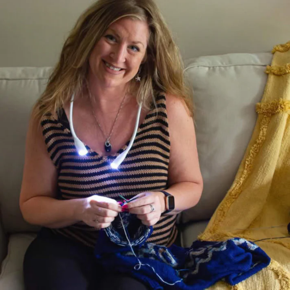 Ja, absolut. HalsLys™ er ideel til aftener eller dårligt oplyste rum, men også om dagen – især til detaljerede projekter med mørke eller kontrastfattige garner. Brugen af lampen hjælper også med at forhindre øjenbelastning.