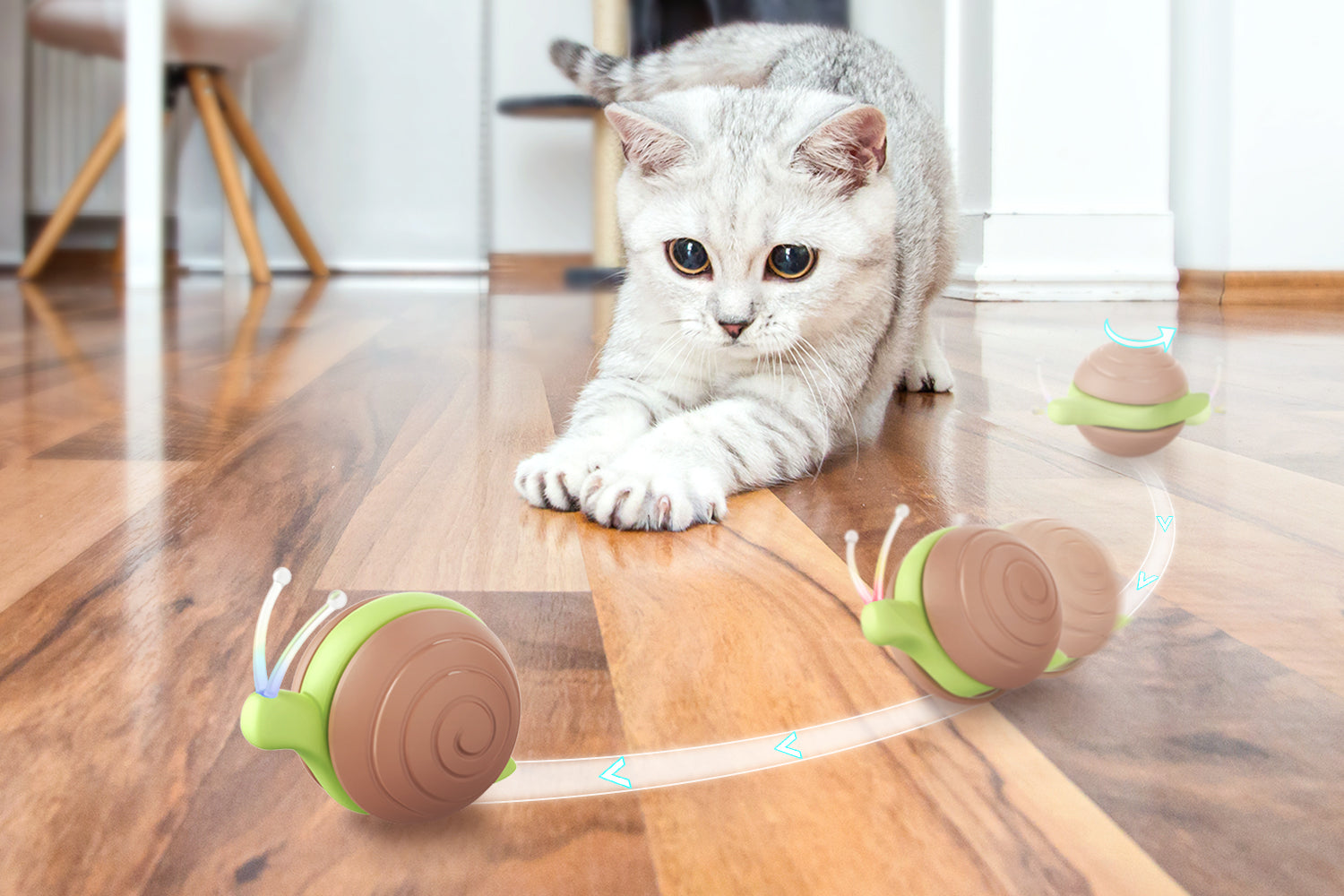 Interaktivt kattelegetøj med løbende snegl